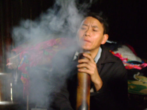 Hỏi chuyện đẻ nhiều, Chớ chưa trả lời, mà ôm điếu gân cổ rít, khiến nước trong điếu sôi òng ọc, rồi ngửa cổ nhả khói. Chớ thều thào bằng cái giọng lơ lớ tiếng Kinh, khoe kỷ lục của mình: “Vợ mình đẻ 16 lần rồi, nhưng mấy lần đẻ non, nó không sống được bỏ mình đi rồi, giờ còn 11 đứa thôi! 5 trai, 6 gái. Nay mình có 2 con dâu, 3 con rể và 11 đứa cháu nội, ngoại rồi đấy!”.