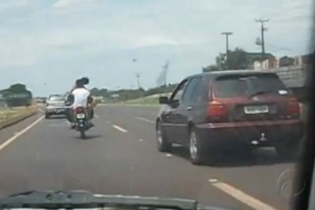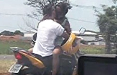 Những lái xe trên đường cao tốc gần Foz de Iguacu, bang Parana phía nam Brazil không khỏi choáng váng khi nhìn thấy một cặp đôi vừa ngồi xe máy vừa hôn nhau say đắm.