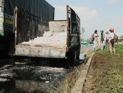 Theo lời tài xế Dũng, chiếc xe bốc hàng từ nhà máy phân bón Bình Điền chở về Bà Rịa -Vũng Tàu. Sau khi qua cầu Bình Phước, phát hiện có cháy qua kính chiếu hậu, tài xế đã bình tĩnh cho xe ép sát vào lề rồi xuống xe cùng bà con dập lửa.