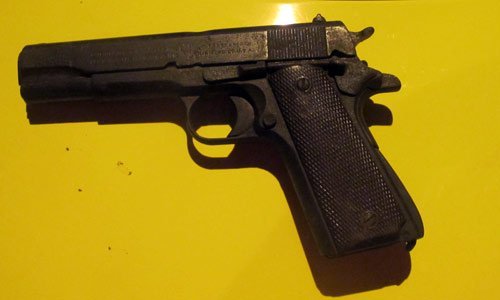 một khẩu súng màu đen (loại của Mỹ sản xuất vào đầu thập niên 70), nhưng