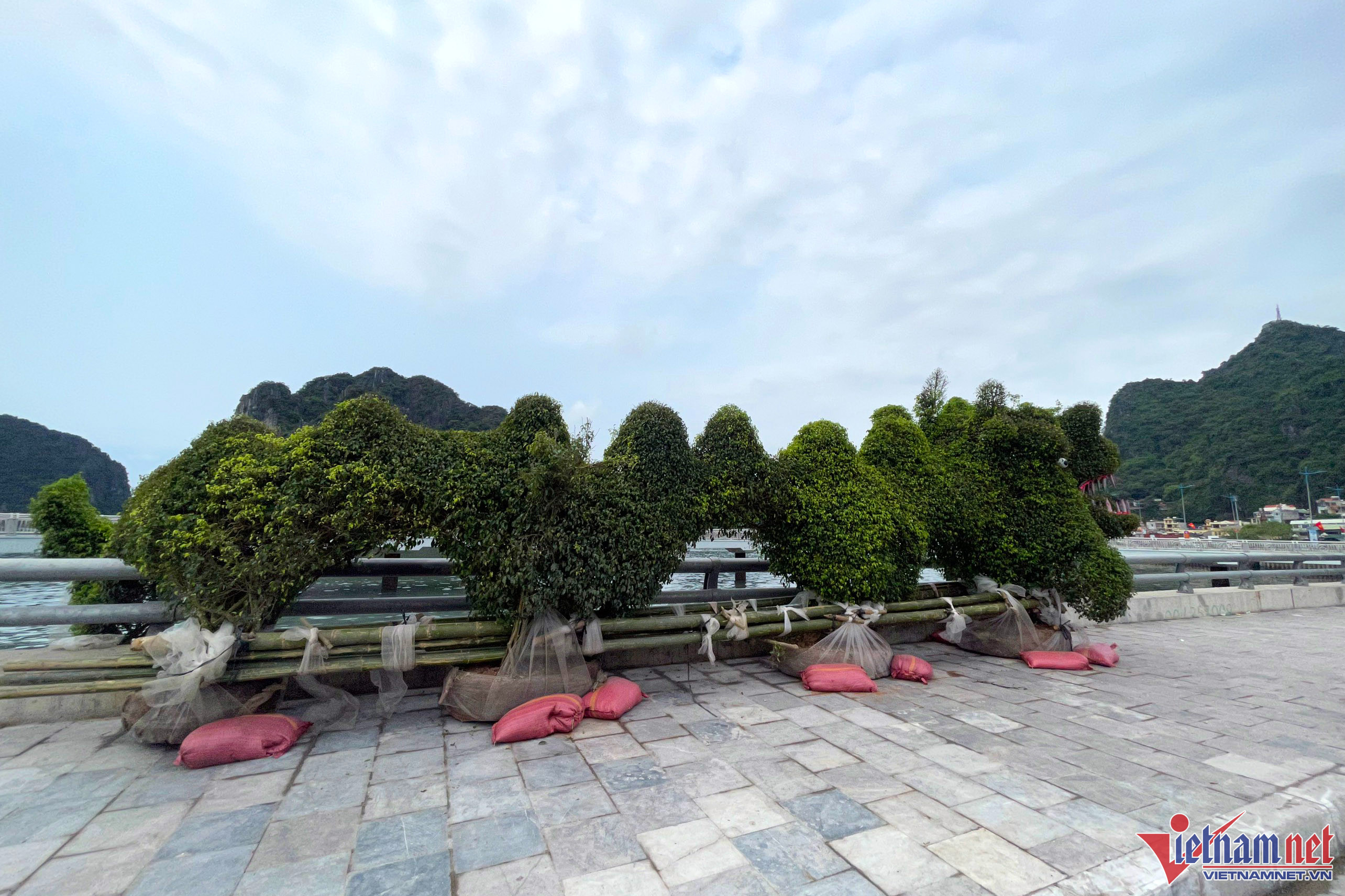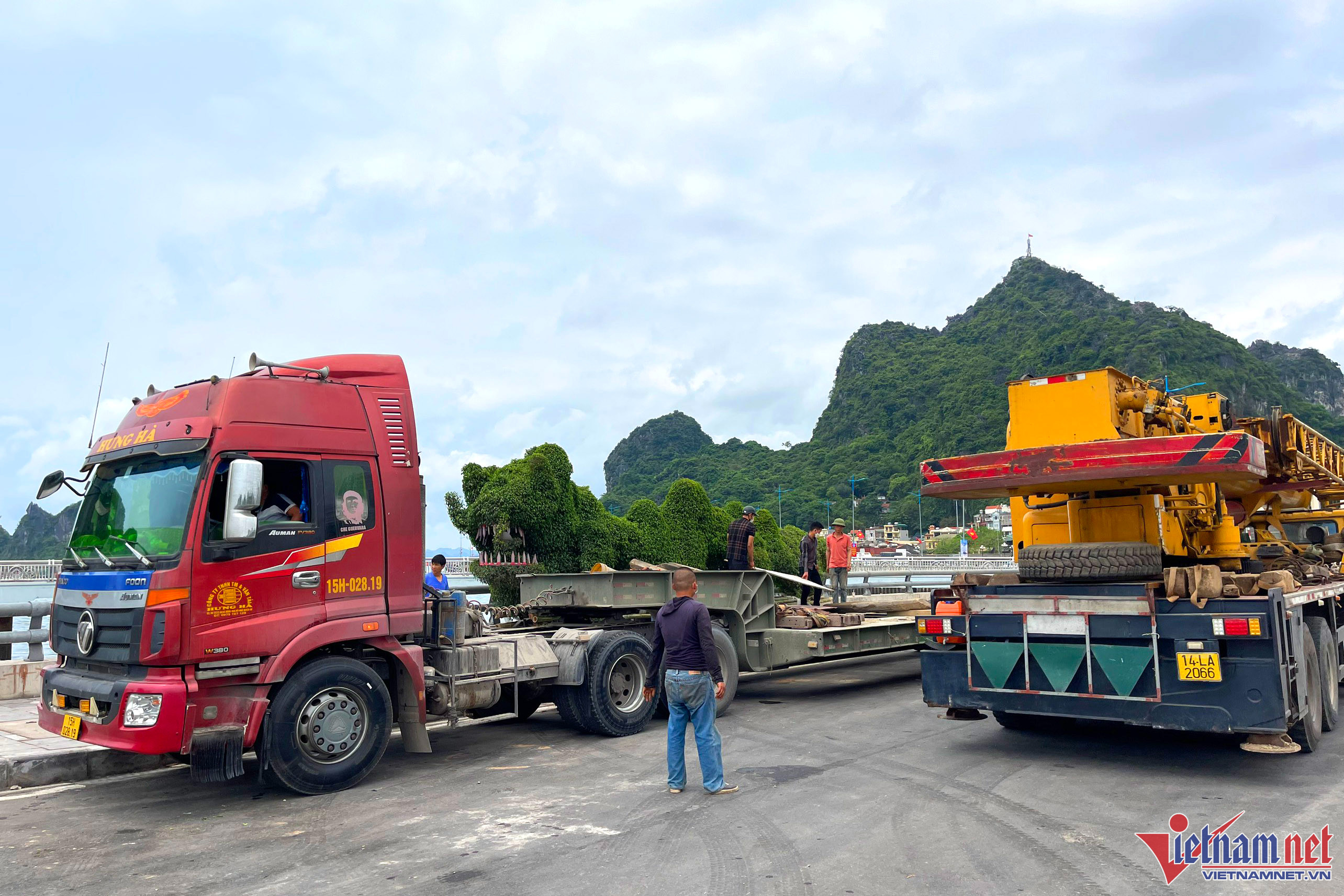Tuy nhiên cũng trong sáng nay, hai 'con rồng' bằng cây này đã được phía Công ty CP Cây xanh Công viên Quảng Ninh đưa xe cẩu tới, mang về lại vườn ươm.