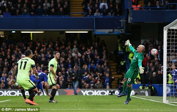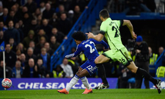 Chelsea tổ chức phản công thần tốc. Hazard chọc khe cho Willian băng xuống kết thúc chéo góc nâng tỉ số lên 2-1.