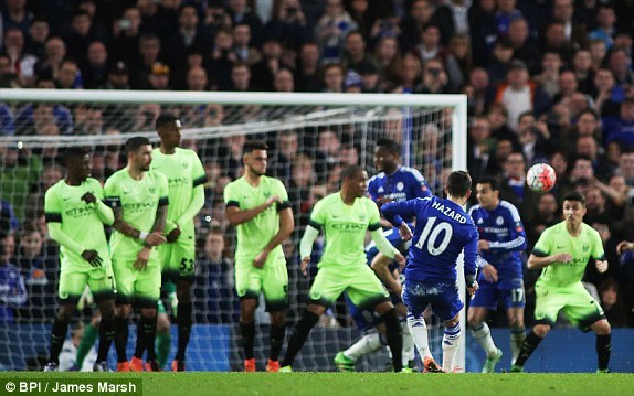 Được hưởng quả đá phạt có góc sút rộng, Hazard bước lên thực hiện cú sút chính xác đánh lừa thủ môn Caballero nâng tỉ số lên 4-1.