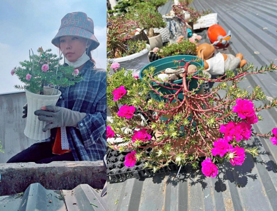 Mỹ tìm mua về trồng thử rồi đam mê. Không có nhiều diện tích để trồng, Mỹ đem các chậu cây lên sân thượng, ban công.