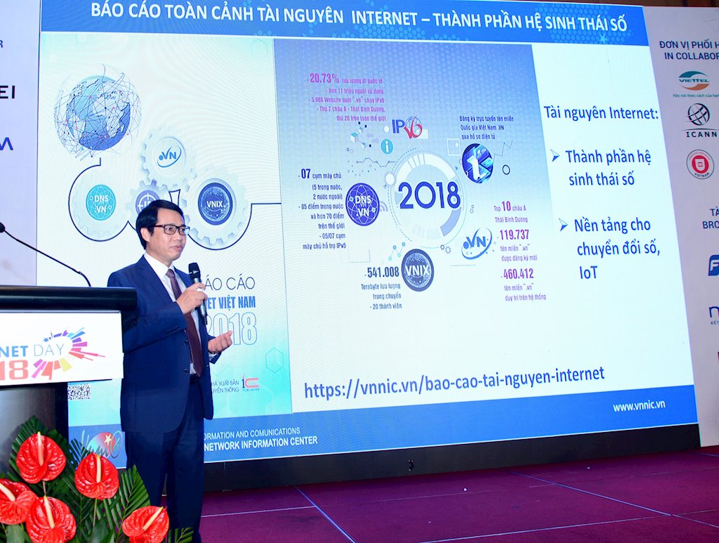 Trong khuôn khổ hội thảo Ngày Internet Việt Nam – Internet Day 2018 được Hiệp hội Internet Việt Nam (VIA) tổ chức hôm nay, ngày 5/12 tại Hà Nội, ông Trần Minh Tân - Giám đốc Trung tâm Internet Việt Nam (VNNIC) đã chính thức công bố “Báo cáo tài nguyên Internet Việt Nam 2018”.