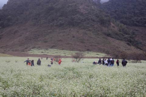 | Bất chấp cái lạnh giá của mưa rừng sương núi những đoàn phượt vẫn nối đuôi nhau đến với miền cải trắng Mộc Châu. |