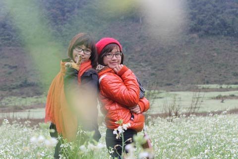 | Nhiều bạn trẻ thích thú trên cánh đồng cải sau chặng đường lạnh giá |