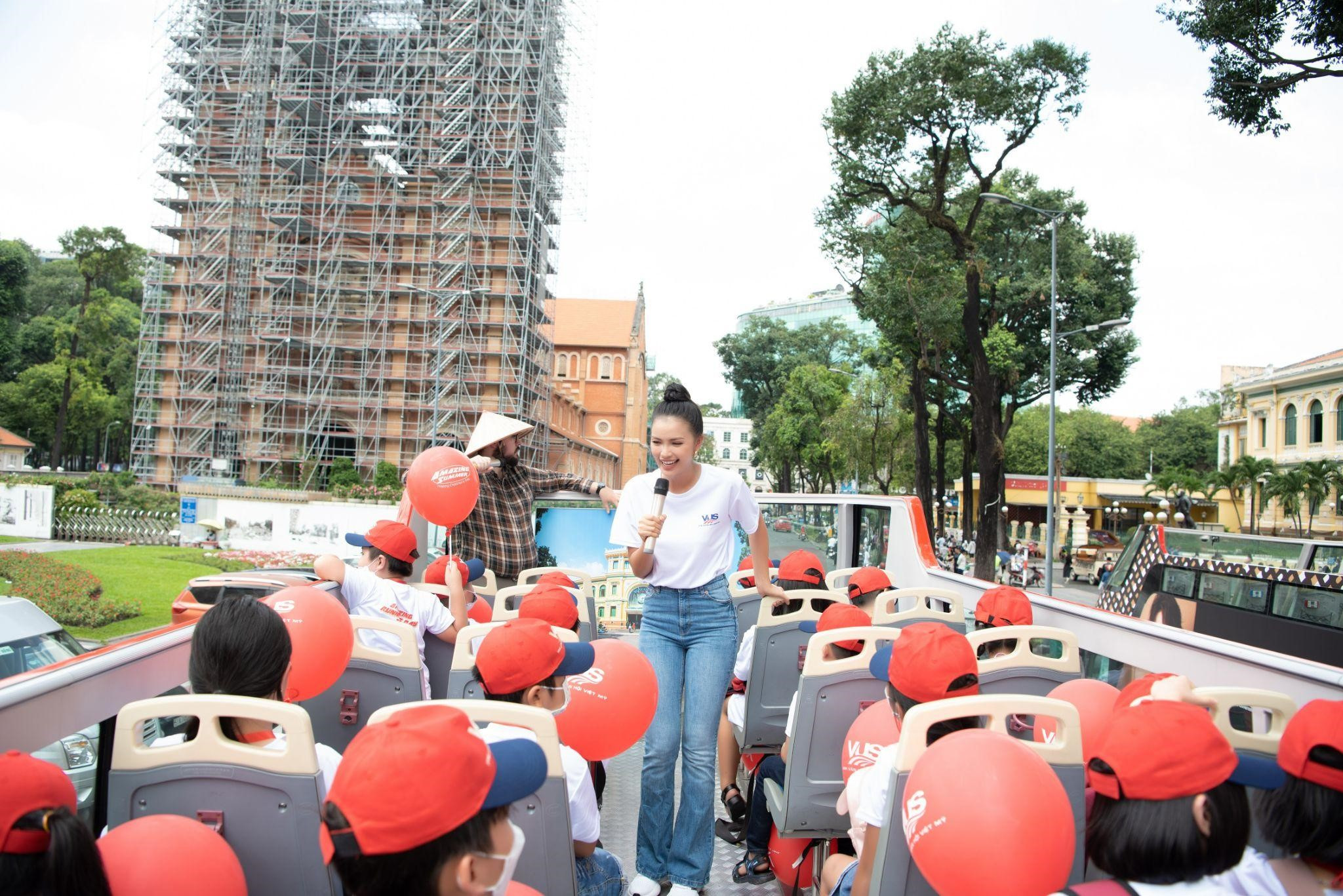 Lớp học Superbus đã được tổ chức vào tháng 6/2022 và nhận được sự quan tâm lớn của các em học viên cũng như phụ huynh. Quay trở lại vào 23/10 vừa qua, chuyến xe Superbus dưới sự dẫn dắt của đội ngũ giáo viên bản ngữ, Việt Nam cùng vị “trợ giảng đặc biệt” - Hoa hậu Hoàn Vũ Việt Nam Ngọc Châu đã đưa các em học sinh từ Tây Ninh du ngoạn đến TP.HCM. Kết nối cùng Hoa hậu Ngọc Châu - một người con của vùng đất Tây Ninh, đội ngũ VUS đã mang đến những trải nghiệm học tiếng Anh có “1-0-2” và truyền cảm hứng, tạo động lực để các em không ngừng tiến lên thông qua những câu chuyện “người thật việc thật”.