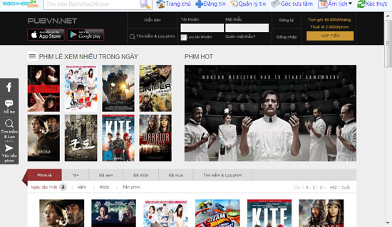 Trang pubvn.tv đưa ra hai mức phí: Thuê bao 40.000 đồng/tháng, hoặc mua phim lẻ là 2.000 đồng/phim.