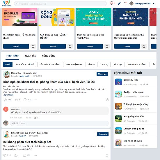 Một điển hình cho sự phát triển và chuyển mình ấy chính là diễn đàn https://www.webtretho.com/. Từ định hướng ban đầu là nơi để các mẹ bỉm sữa cùng chia sẻ thông tin, thảo luận về các vấn đề liên quan đến mẹ bầu, trẻ nhỏ và là nơi để các thành viên tham gia diễn đàn chia sẻ lại những sản phẩm dành riêng cho mẹ và bé.