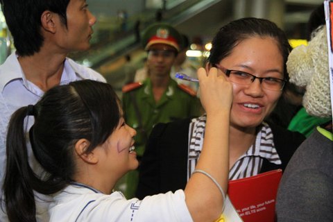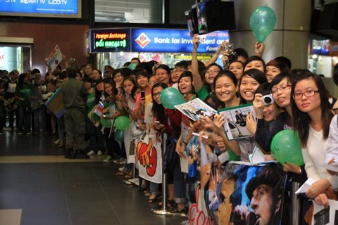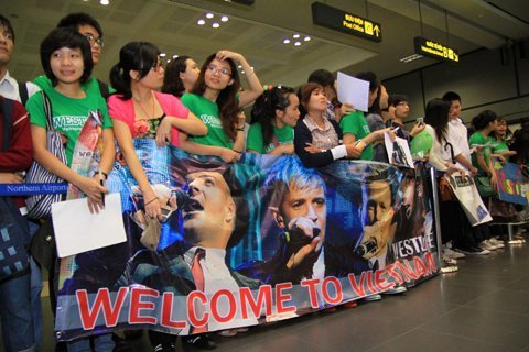 nhiều fan hâm mộ như vậy ở một đất nước mà trước đây họ chưa từng được chân đến. Họ tỏ ra đặc biệt thích chiếc nón lá của Việt Nam mà người hâm mộ mang theo.