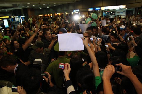 Nội Bài thực sự nóng lên từng phút với sự xuất hiện của hàng trăm người hâm mộ