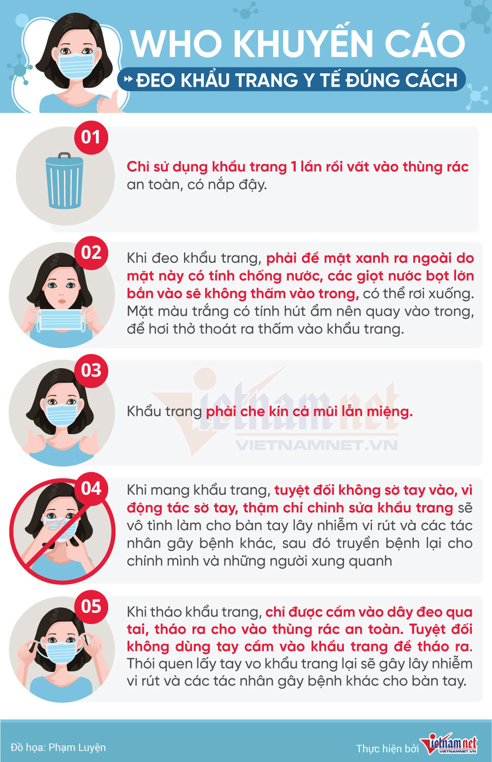 WHO khuyến cáo cách đeo khẩu trang y tế phòng Covid-19