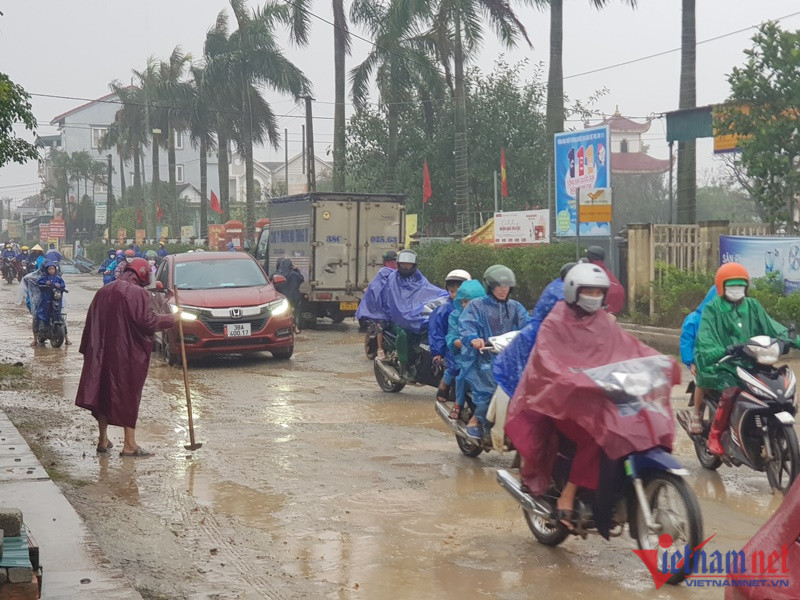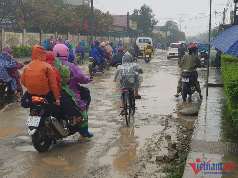 Đặc biệt, vào lúc tan tầm, có khoảng 1.500 học sinh của Trường THCS Kỳ Khang và Trường Tiểu học Kỳ Khang; hàng trăm cán bộ ở ủy ban, giáo viên, nhân viên y tế, người dân, tiểu thương cùng đổ ra đường khiến việc di chuyển trên con đường chi chít thùng vũng trở nên chật vật...
