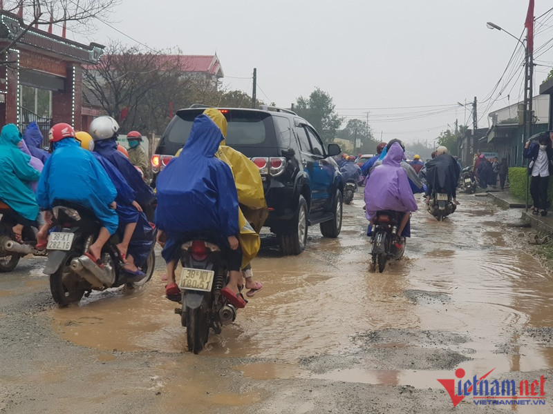 Ông Nguyễn Đình Song (54 tuổi, trú thôn Vĩnh Phú) cho biết, con đường này đã xuống cấp 4 năm nay, cứ sửa đi sửa lại nhưng vẫn thùng vũng như "ma trận". Ngoài ra, do có nhiều cơ quan, đơn vị đóng trên trục đường nên vào sáng sớm và giờ tan tầm hầu như tắc nghẽn thường xuyên. Thậm chí nhiều học sinh đi xe đạp, xe điện bị ngã do đường "ổ trâu, ổ voi".