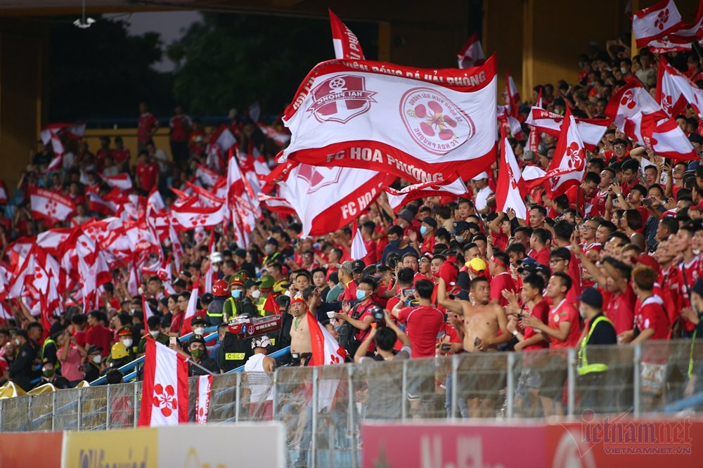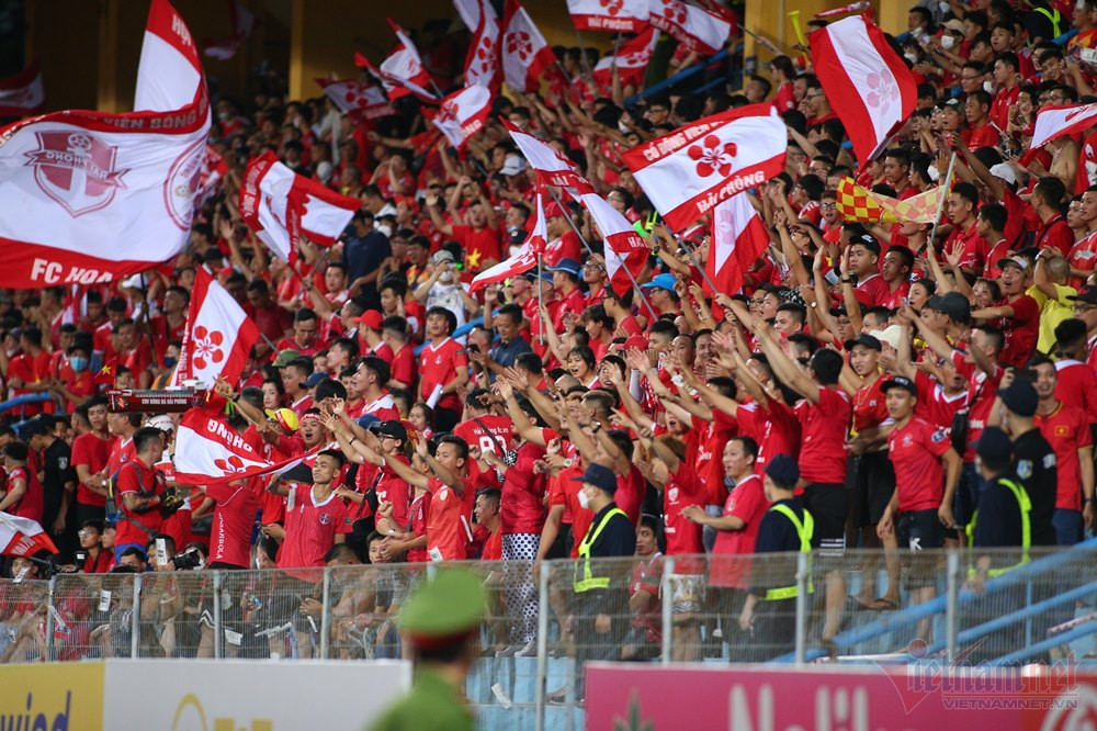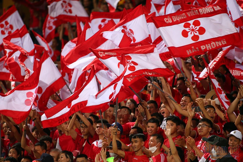 CĐV Hải Phòng nhuộm đỏ khán đài sân Hàng Đẫy tối 10/7.