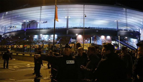 Cũng khoảng thời gian đó, có ba vụ nổ khác xảy ra gần sân vận động Stade de France trong lúc đội tuyển Pháp và Đức đang có trận đấu giao hữu.