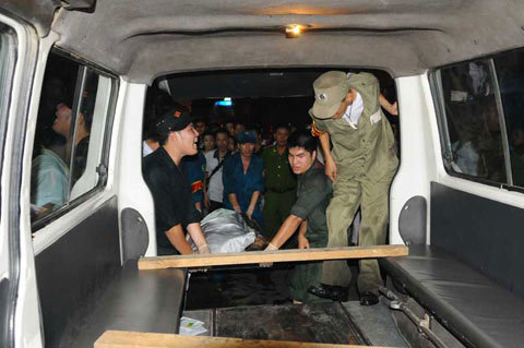 Hơn 22h cùng ngày, tại số 55 Mã Mây lượng chức năng đã tiến hành tìm kiếm nạn nhân và đưa xác hai nạn nhân xấu số ra ngoài.