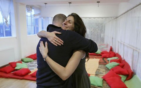 chờ đợi tham dự "hội thảo ôm ấp".