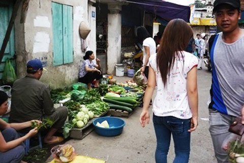 thể, tại một chợ cóc trên đường Trần Nhân Tông (Cầu Giấy, Hà Nội), rau