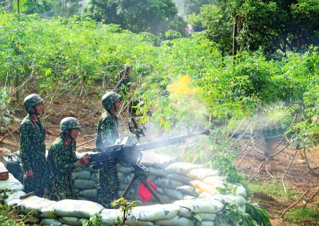 | Lực lượng dự bị động viên tỉnh Hà Nam thực hành bắn đạn thật trong diễn tập khu vực phòng thủ |