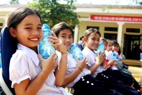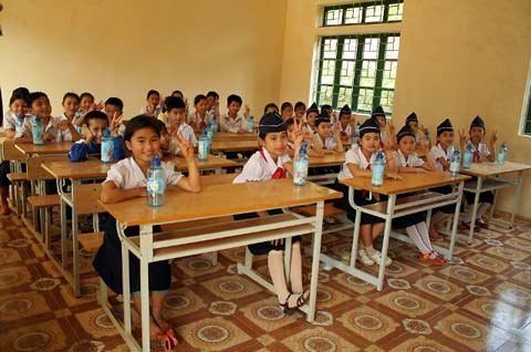 Các em HS tiểu học Lỗ Sơn và bình nước Love Bottle |