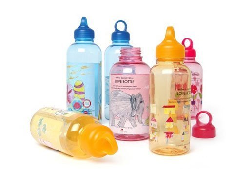 Bình nước Love Bottle in hình tự vẽ của các em học sinh |