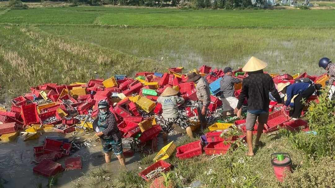 Chiều nay (14/7), lãnh đạo UBND xã Gio Hải (huyện Gio Linh) thông tin, người dân địa phương đã hợp sức thu gom cá giúp tài xế có xe bị lật.