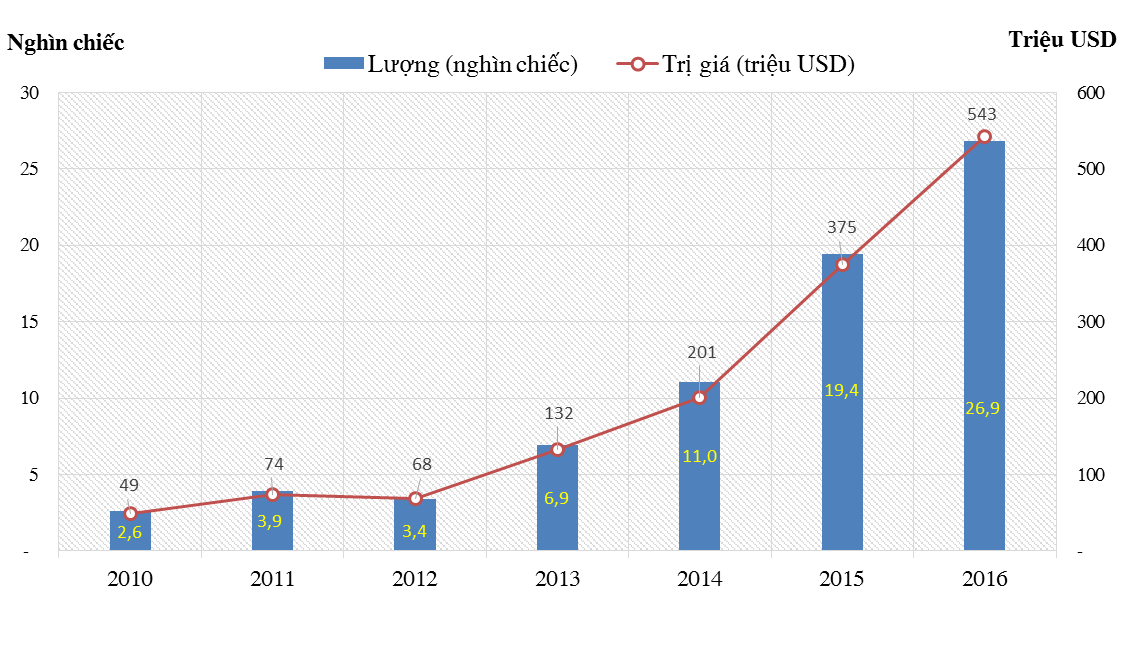 Theo một số liệu thống kê từ Tổng cục Hải quan, trong giai đoạn từ năm 2010 - 2016, lượng xe bán tải được nhập về Việt Nam tăng mạnh cả về lượng và trị giá. Cụ thể, năm 2010 Việt Nam chỉ nhập 2.600 chiếc thì đến năm 2016 con số này đã lên đến 29.9000 chiếc, tăng hơn 10 lần so với năm 2010.