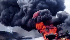Một chiếc xe tải vận chuyển dầu bốc cháy dữ dội sau khi va chạm với một chiếc xế hộp trên đường cao tốc ở miền bắc Trung Quốc. Cảnh tượng khói đen bốc lên bao phủ đoạn đường dài khiến người xem không khỏi ám ảnh.
