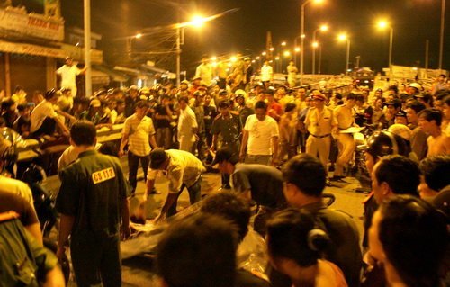 Nạn nhân chết tại chỗ và xe máy bị hư hỏng nặng. Xác minh qua giấy tờ tùy thân, nạn nhân là Dương Văn Huỳnh (46 tuổi, ngụ quận 5).