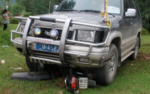 Vào thời điểm trên, xe ô tô 7 chỗ biển số xanh BKS 31A – 4482 cắm cờ “xe hộ đê” do tài xế Vũ Bá Khang trú tại Cầu Giấy, TP. Hà Nội điều khiển hướng Bắc – Nam đã tông vào xe mô tô BKS 73N8-1106 do anh Trịnh Đình Phú, trú xã Quảng Phú (huyện Quảng Trạch) điều khiển hướng ngược lại đang rẽ trái để qua đường.