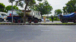 Tại hiện trường, đám cháy bùng phát mạnh, khói đen bốc cao kèm theo nhiều tiếng nổ lớn. Bên cạnh đó, một lượng lớn xăng tràn ra ngoài, chảy dài trên đường, cháy lan vào các thảm thực bì xung quanh.