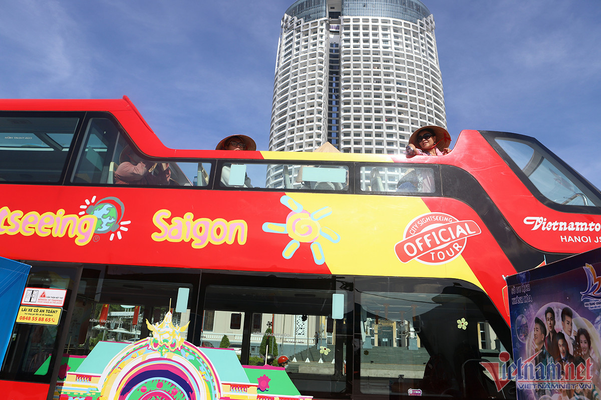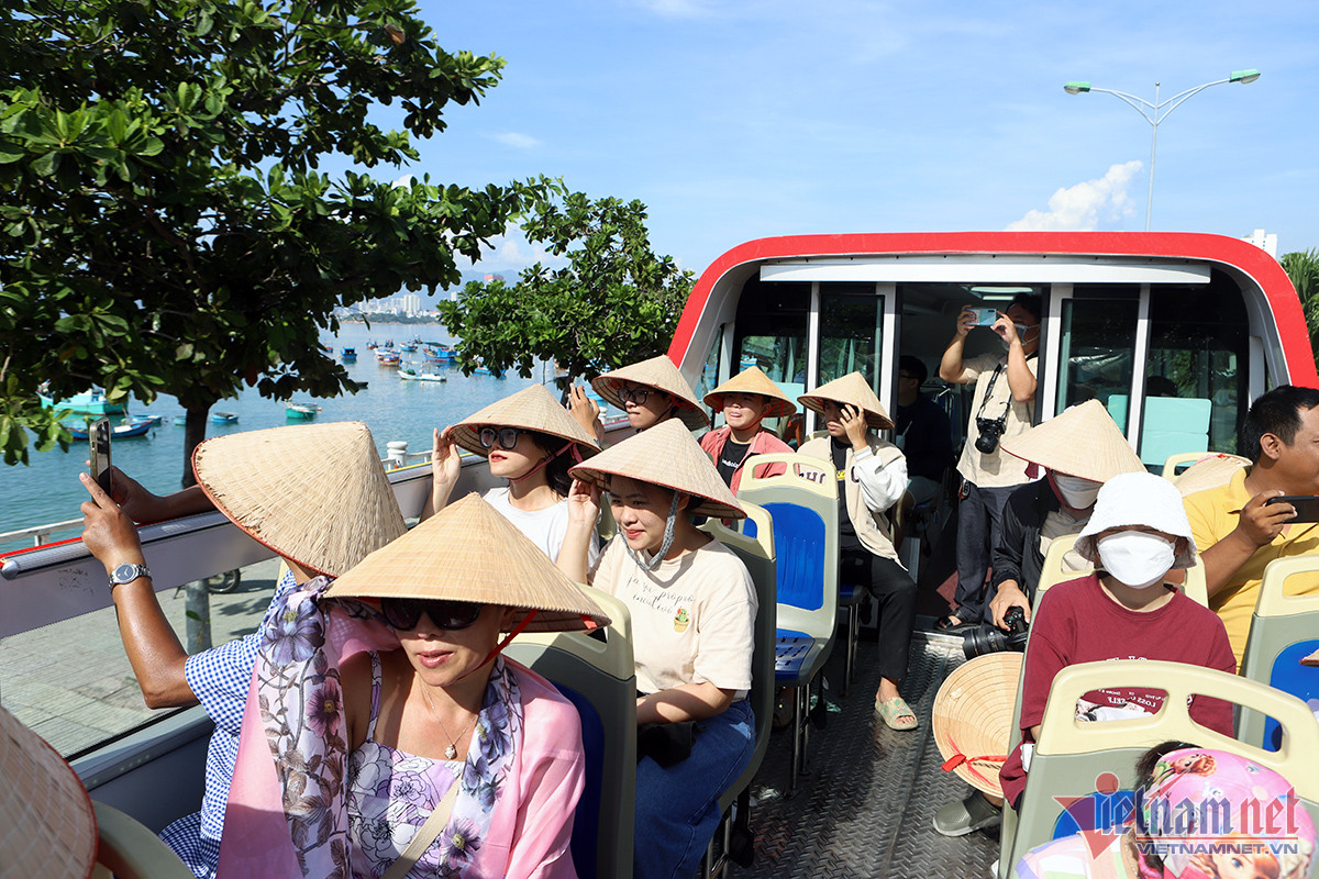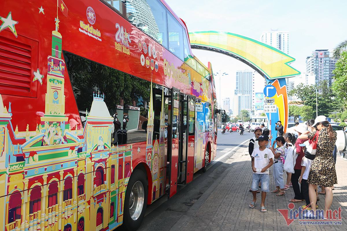 Xe buýt hai tầng có 55 chỗ ngồi, chở người dân và du khách miễn phí qua các điểm di tích, danh thắng nổi tiếng dọc cung đường biển TP Nha Trang (Khánh Hòa).
