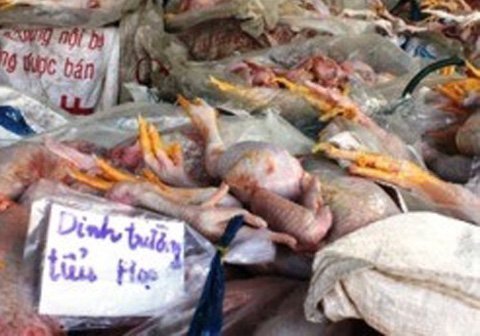 | Thịt gà thối chở vào trường tiểu học tiệu thụ (Ảnh: SGGP) |