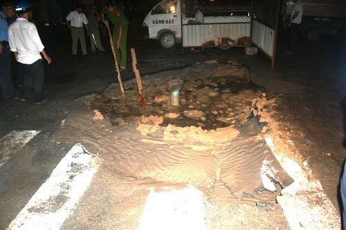 Theo lời thuật lại của bà con chung quanh, trước khi xảy ra sự cố, lúc 19g ngày 29/11, một nhóm 3 người không rõ đơn vị nào đã đến đào một lỗ nhỏ để thăm dò bên dưới mặt đường.