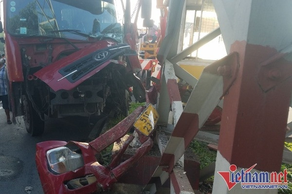 Khi đến cầu Phú Mỹ thì bị nổ lốp trước khiến phương tiện lao qua trái, tông ngã đổ dải phân cách bằng sắt.