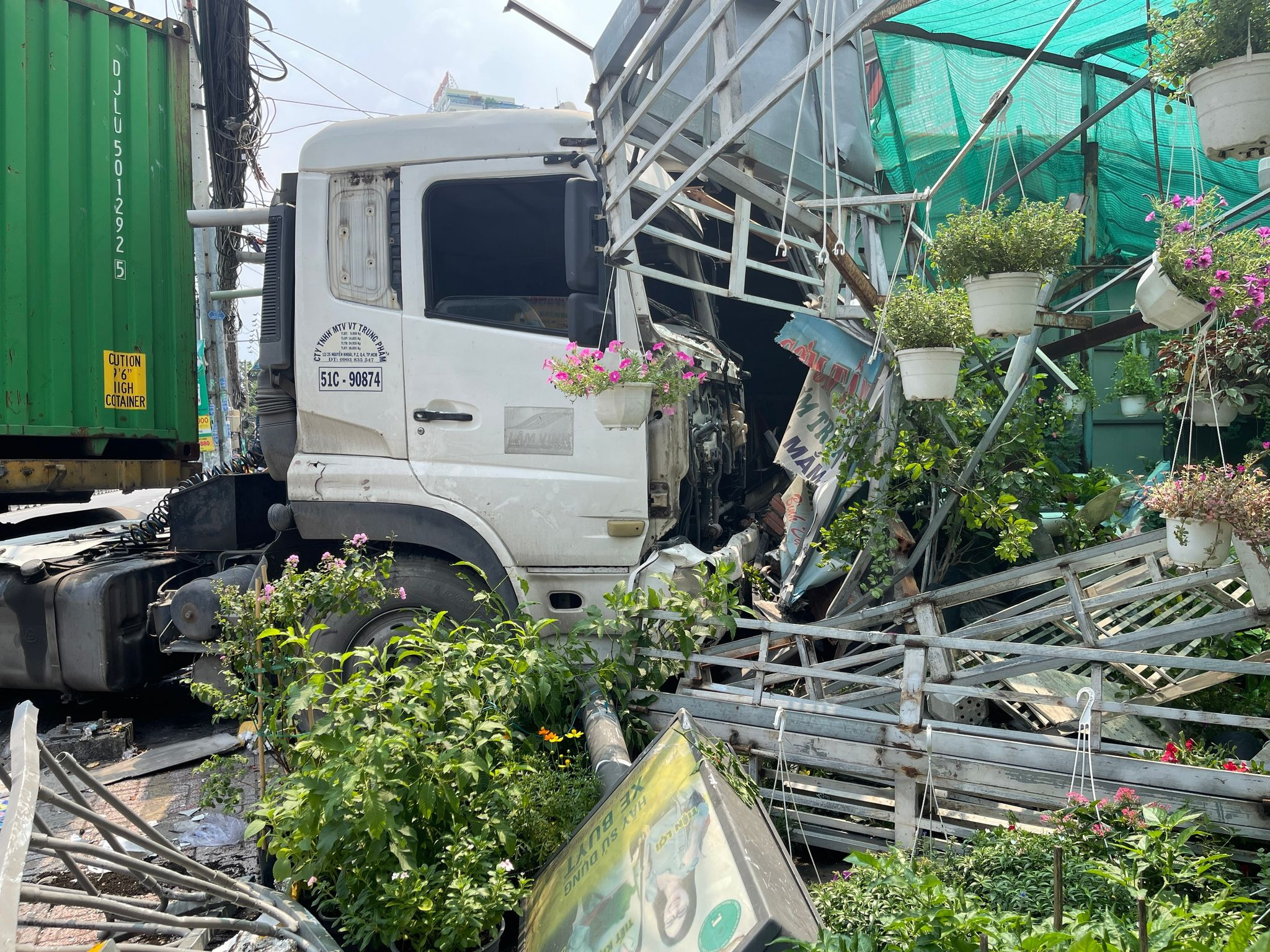 "May mà có bức tường của quán cơm và tiệm bán hoa tươi liền kề đổ sập hãm xe container lại. Mọi người hô hoán nhau tháo chạy kịp trong gang tấc"- chị Linh, nhân chứng kể.