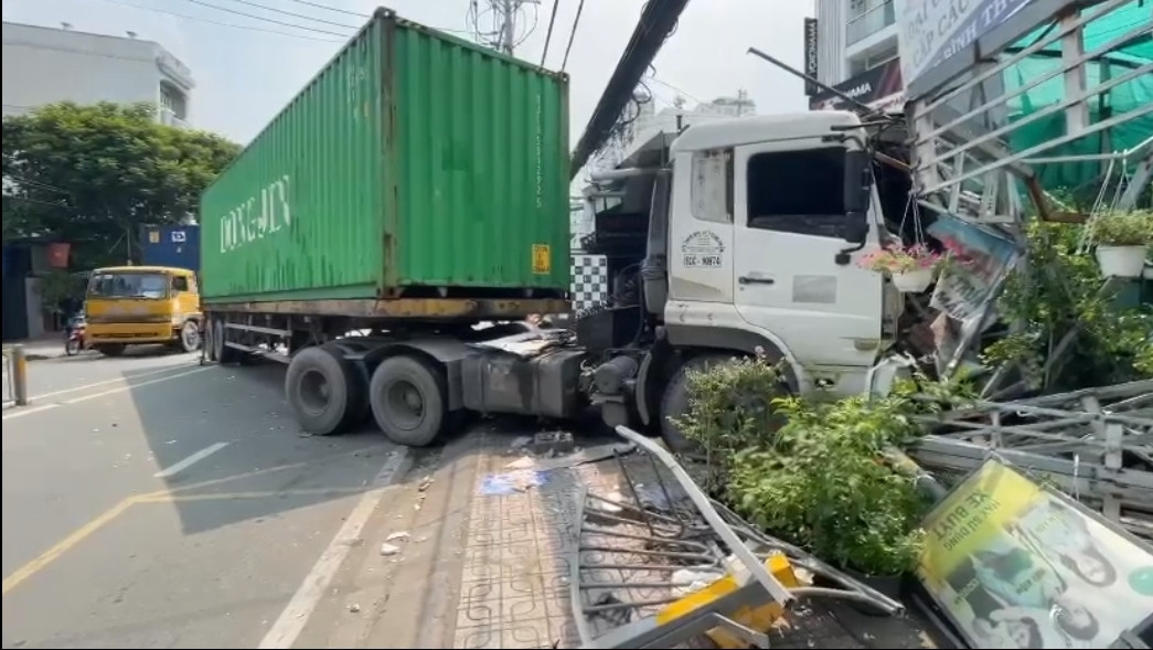 Chưa dừng lại, xe container sầm sập lao qua đường tông thẳng vào 1 quán cơm.