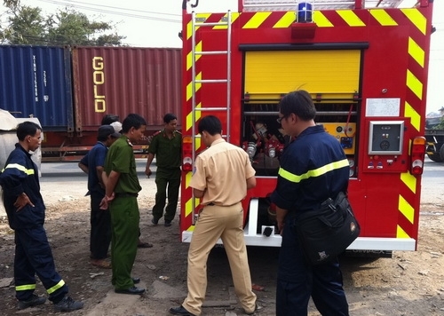 Lúc 14 giờ ngày 14/1, một chiếc xe chữa cháy mới cứng (chưa đăng ký biển số) dừng vì kẹt trên xa lộ Hà Nội xe trước đường vào cảng Phước Long (P.Trường Thọ, Q. Thủ Đức).
