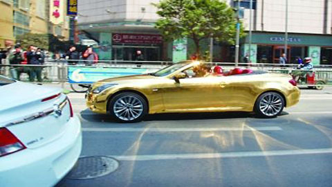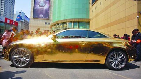 Lẫn trong những chiếc xe bình thường đang lưu thông trên phố, chiếc xemui trần phát sáng lóng lánh như được dát cả tấn vàng dưới ánh nắng mặttrời khiến mọi người “lóa mắt” tới mức phải dừng chân lại chiêm ngưỡng.