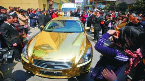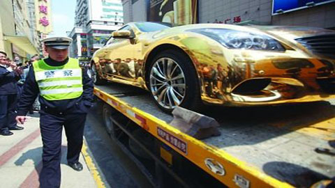 Tuy nhiên, những lời xì xào bàn tán hay những cuộc đánh cược còn chưa ngã ngũ thì cảnh sát đã tới lập biên bản và dùng xe kéo đưa chiếc xe này về đồn để xử lý. Người dân trên đường xúm xít vào xem xe được dát vàng thật hay giả Ngồi trên xe là một người đàn ông và một người phụ nữ Nhiều người đã chụp hình, quay phim chiếc xe độc đáo này Chưa đầy 10 phút sau, cảnh sát tới kiểm tra giấy tờ và đưa xe về đồn vì đỗ sai nơi quy định