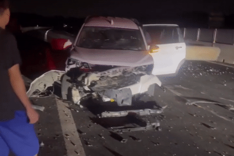 Hình ảnh do người dân lưu thông trên tuyến ghi lại cho thấy phương tiện gần như chiếm hết các làn xe chạy, buộc nhiều ô tô đang lưu thông trên cao tốc phải giảm tốc độ, thậm chí dừng lại để tránh xảy ra va chạm.