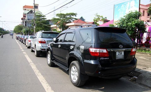 | Dàn xe với cả chục chiếc Mercedes và cả những chiếc Fortuner tham dự đám cưới và đoàn rước dâu của con đại gia đất Sơn Tây. |