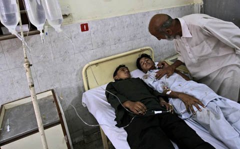 Các nạn nhân đang được điều trị tại bệnh viện Benazir Bhutto hospital, in Rawalpindi, Pakistan. (Ảnh: AP)