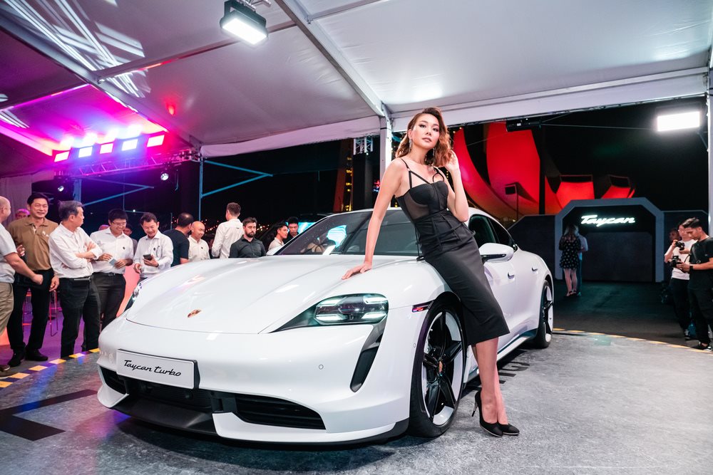 Siêu mẫu Thanh Hằng bên Taycan Turbo |