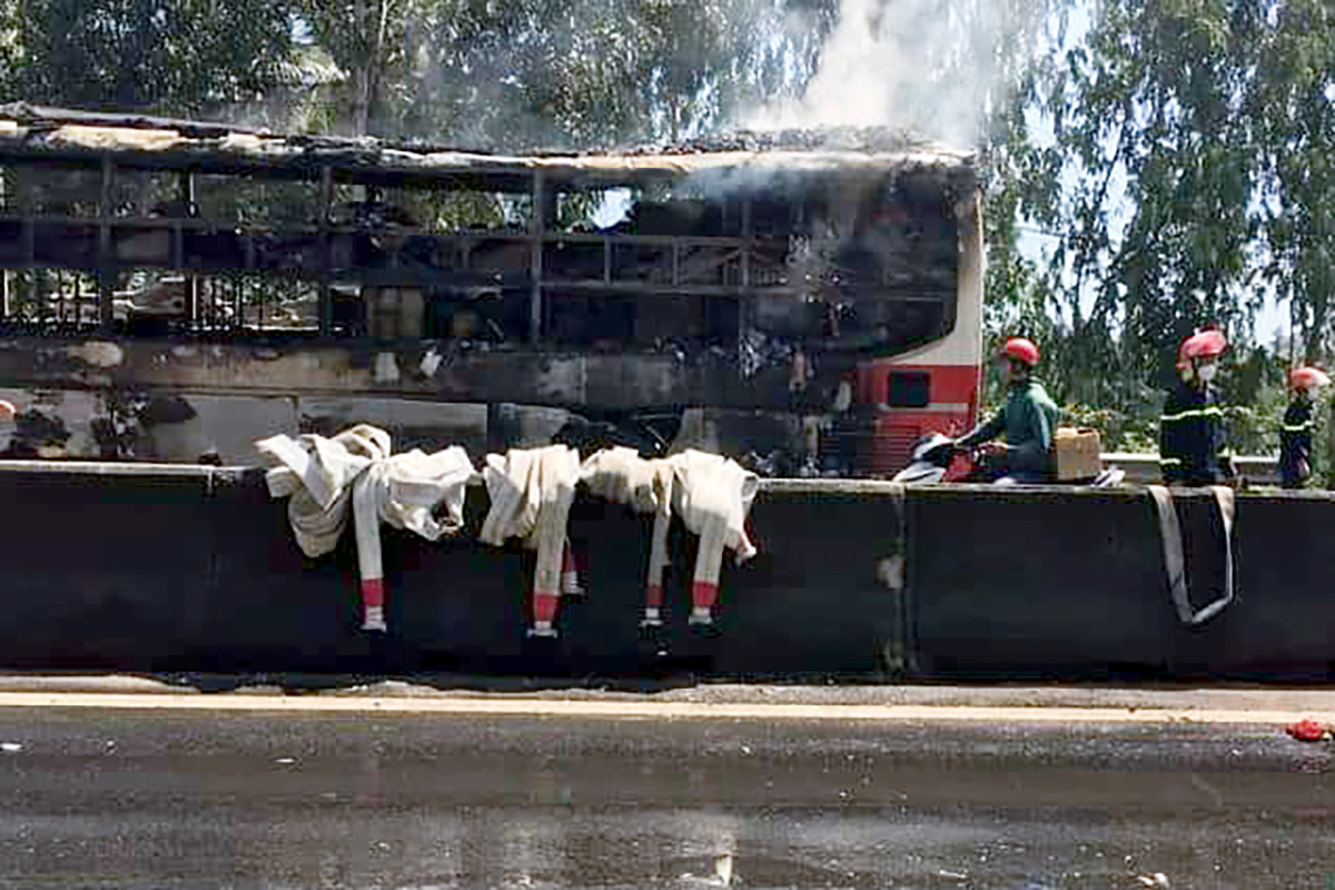 Hàng chục cảnh sát cứu hỏa cùng xe chữa cháy được điều động đến dập tắt đám cháy ngay sau đó. Hỏa hoạn không gây thương vong, song chiếc xe giường nằm bị thiêu rụi, cháy trơ khung.