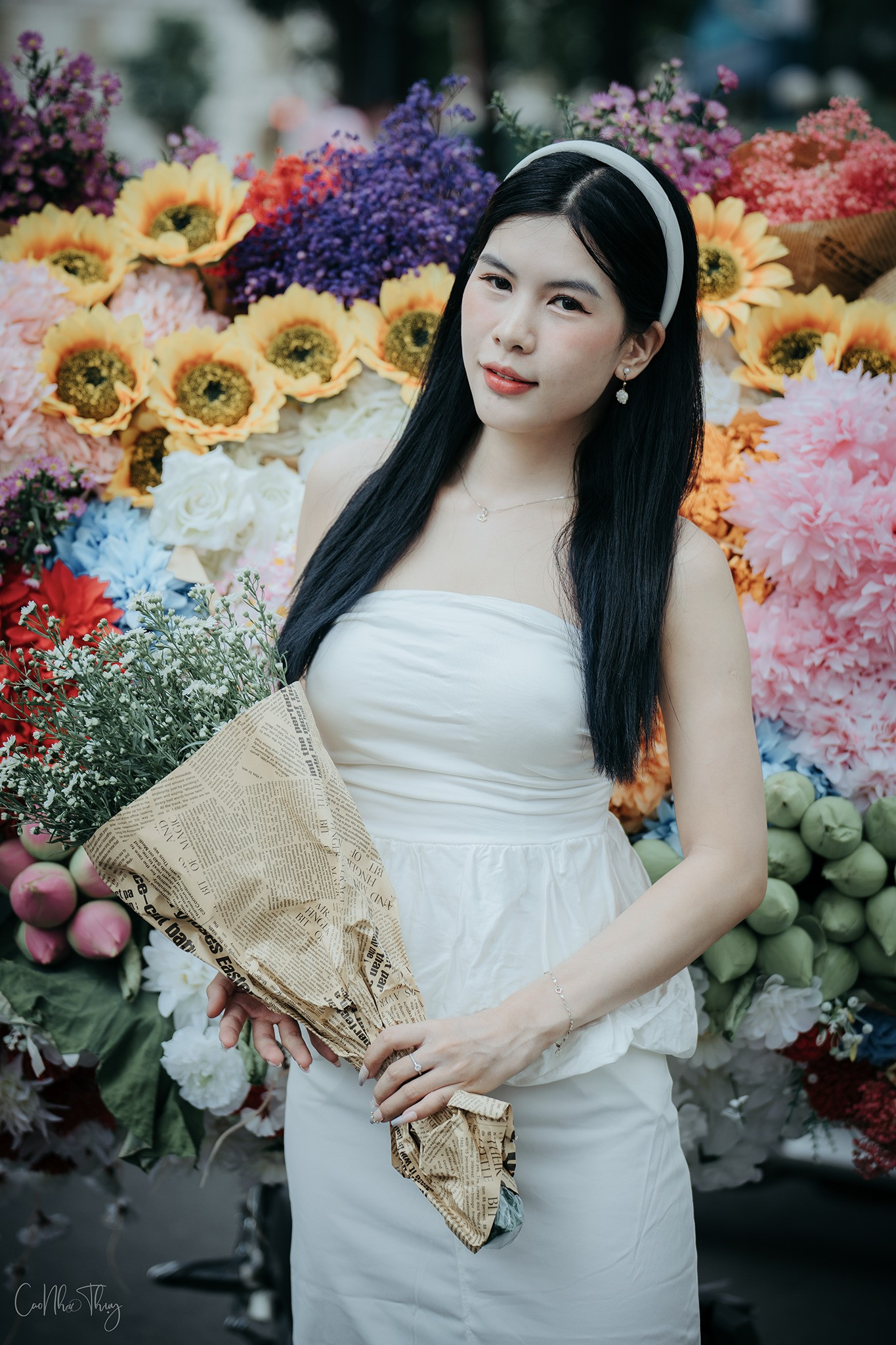 “Xe hoa ở đây rất đa dạng, từ hoa sen, hướng dương tới những đóa cúc họa mi xinh đẹp. Chi phí chụp cùng hoa cũng hợp lý, chỉ 50.000 đồng", Thảo cho biết.