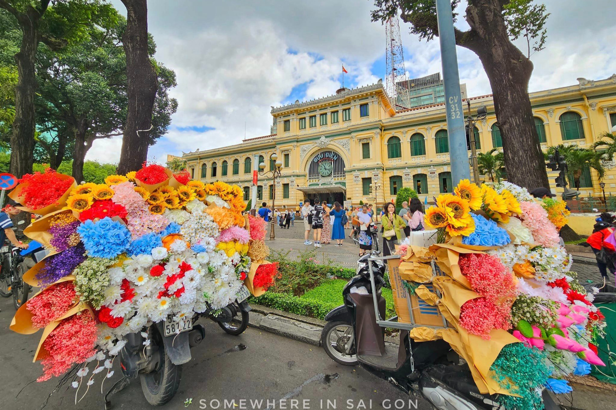 Những ngày đầu tháng 9, nhiều xe hoa rực rỡ sắc màu xuất hiện ở các địa điểm nổi tiếng của TP.HCM như Công viên Gia Định (Gò Vấp), Nhà thờ Đức Bà, Bưu điện trung tâm thành phố (Quận 1) nhằm phục vụ nhu cầu chụp ảnh, check-in của người dân.