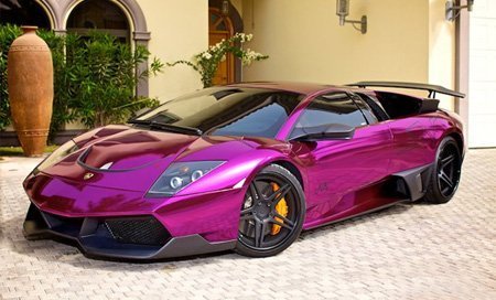 | Lamborghini Murcielago mạ crôm màu tím. Nhiều siêu xe được mạ crôm theo nhiều màu sắc khác nhau, từ bạc, đỏ đến xanh lá... Ảnh: Pinboard. |